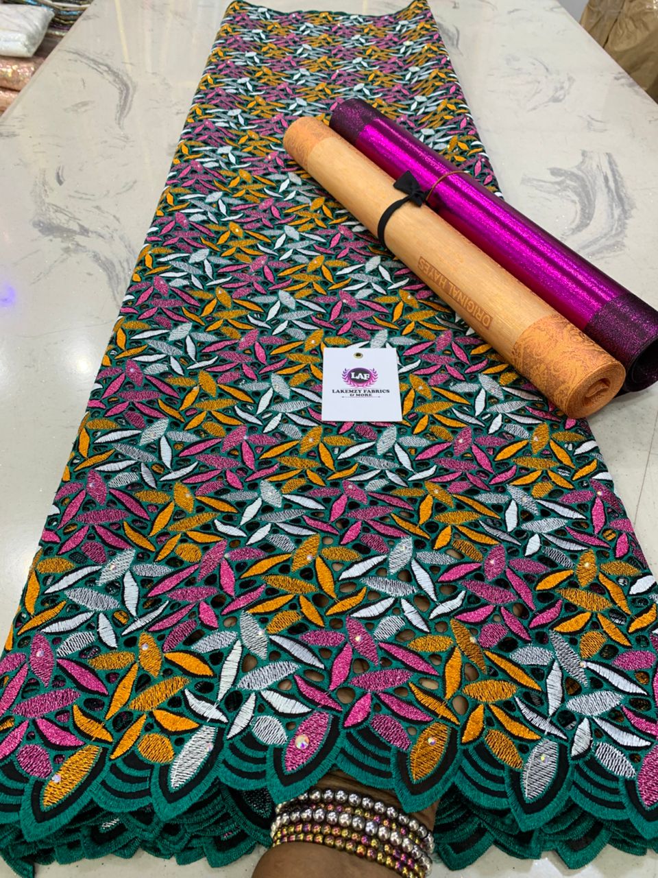Lakemzy Fabrics & More specializes in wholesale and retail sales of Exotic Aso ebi, Exclusive Laces, Swiss Voile, Atiku. We offer nationwide and international deliveries.